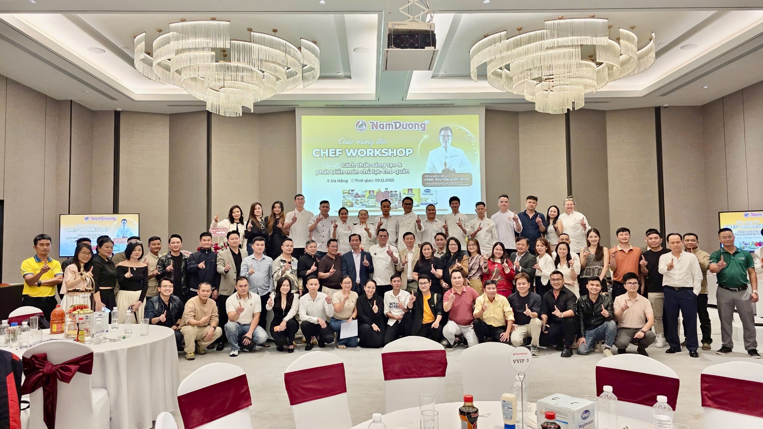 Hơn 60 đầu bếp chuyên nghiệp và đại diện các đơn vị F&B hàng đầu khu vực miền Trung đã hội tụ tại Chef Workshop diễn ra tại TP Đà Nẵng vừa qua, trong khuôn khổ chương trình phối hợp tổ chức giữa nhãn hàng gia vị Nam Dương và Nghi Academy. Sự kiện mang đến không gian giao lưu, chia sẻ và trải nghiệm ẩm thực giàu cảm hứng, xoay quanh chủ đề thiết thực: “Cách thức sáng tạo và phát triển món chủ lực cho quán”.